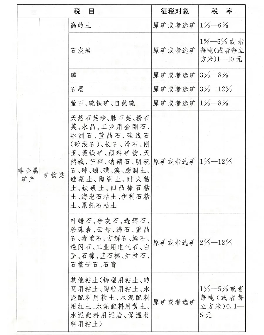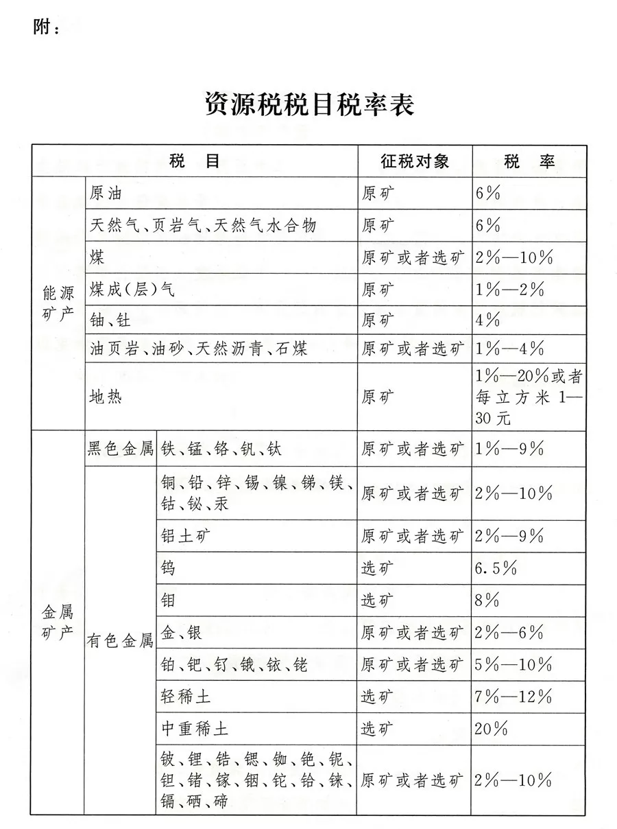 应税资源的具体范围,由本法所附《资源税税目税率表》(以下称《税目税率表》)确定。